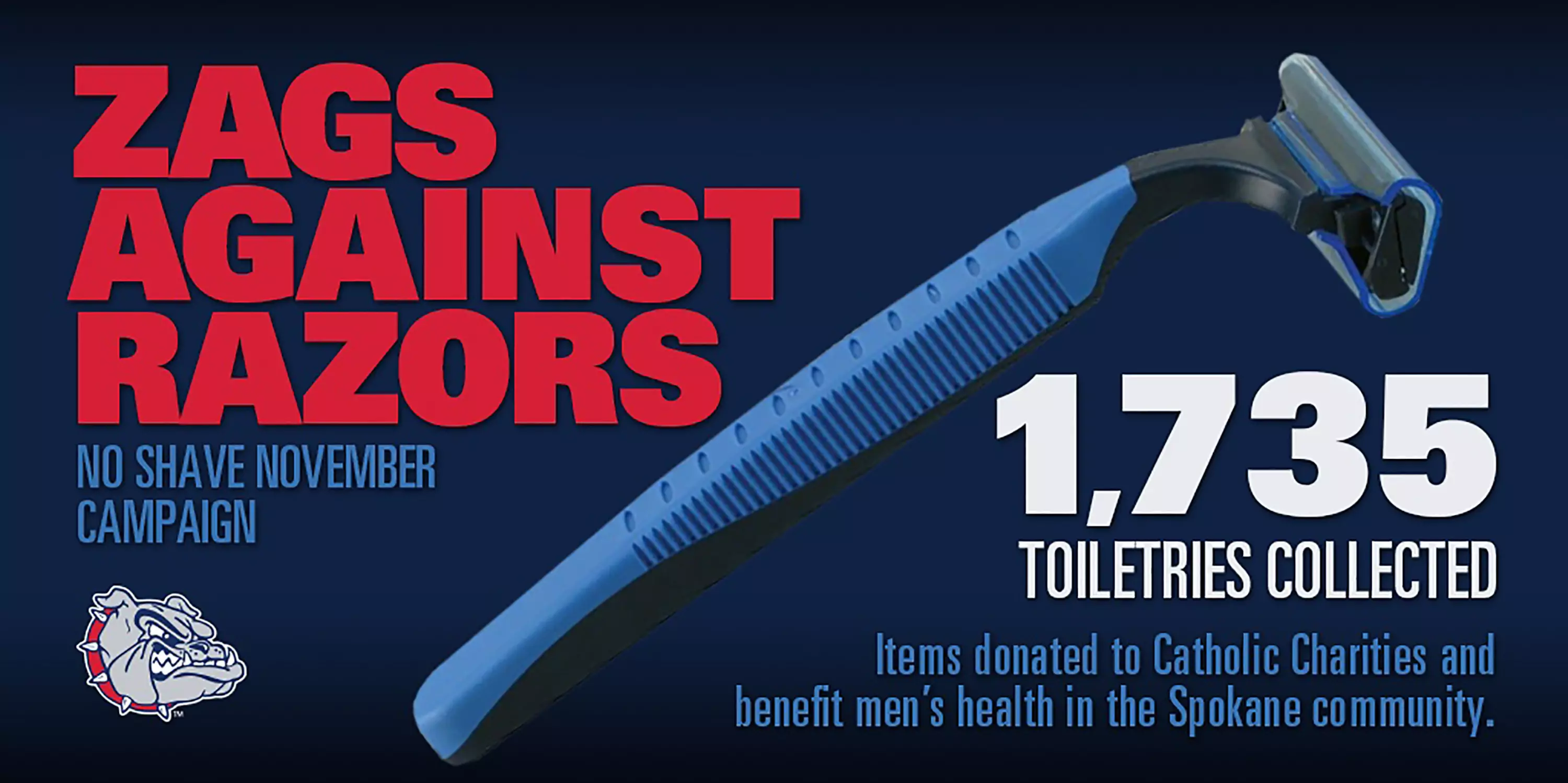 All items collected for the Zags Against Razors initiative will be donated to Catholic Charities and distributed to those in need.